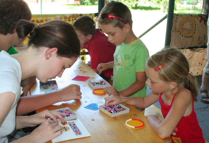 Druhý léto-kružní den s obrázky z korálkůOriginální obrázky z korálků vznikaly v neděli odpoledne v Záblatí v rámci Léto-kruhů. Ve tvůrčí dílničce děti upevňovaly korálky do speciální podložky, na které tvarovaly obrazce dle své fantazie. Někteří si takto sestavili srdíčko, jiní zvířátko. Speciální korálky výtvarnice Eliška Václavíková na závěr zalisovala pomocí žehličky a děti si takto „zpevněné“ obrázky mohly odnést domů. Společně s dětmi v neděli odpoledne tvořili také malíři, včetně členů výtvarné skupiny Klubu U létající ryby.